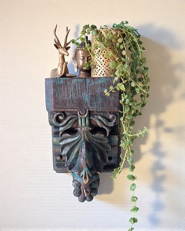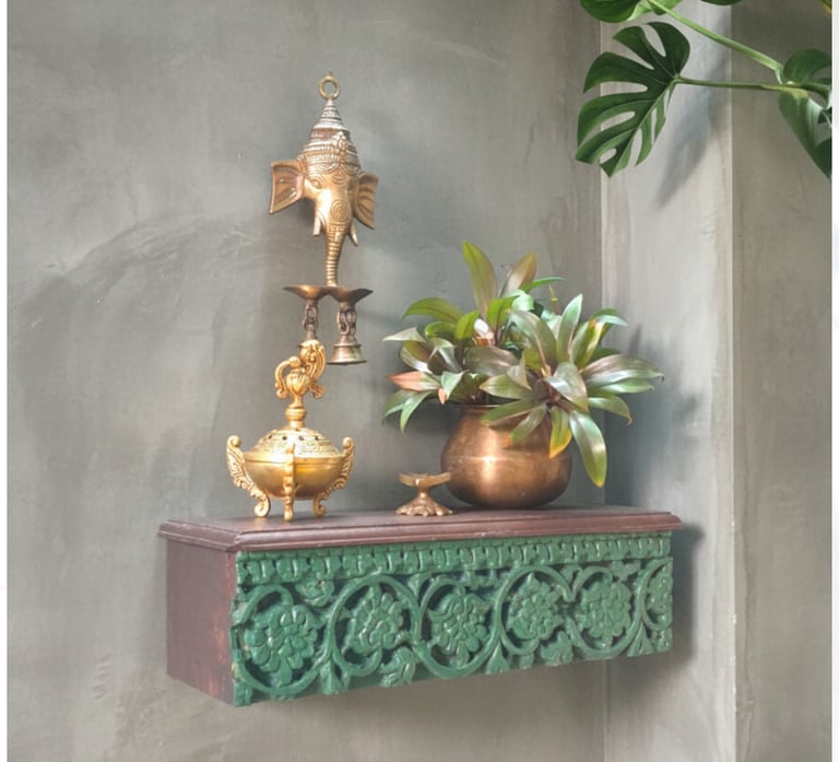 Hand-carved vintage wall shelves where bird motifs bring lightness, grace & charm.